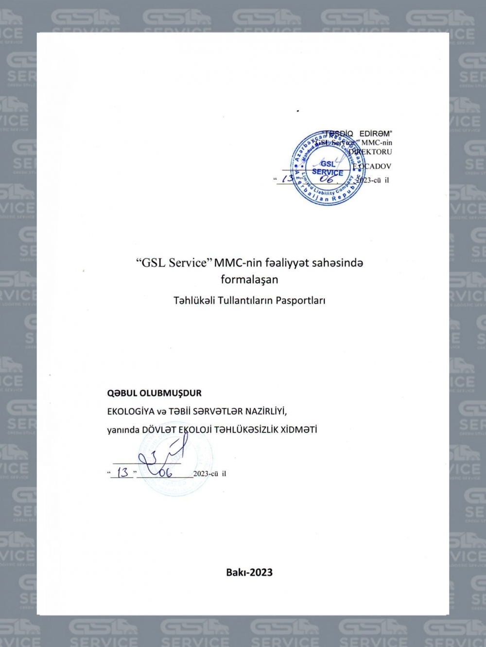 2021-ci ildə yaradılan GSL Service MMC fəaliyyət müddəti ərzində ölkənin ən nüfuzlu şirkətlərindən biri halına gəlmiş və tullantıların daşınması və çeşidlənməsi sahəsində öncül rolunu qorumağı bacarmışdır.