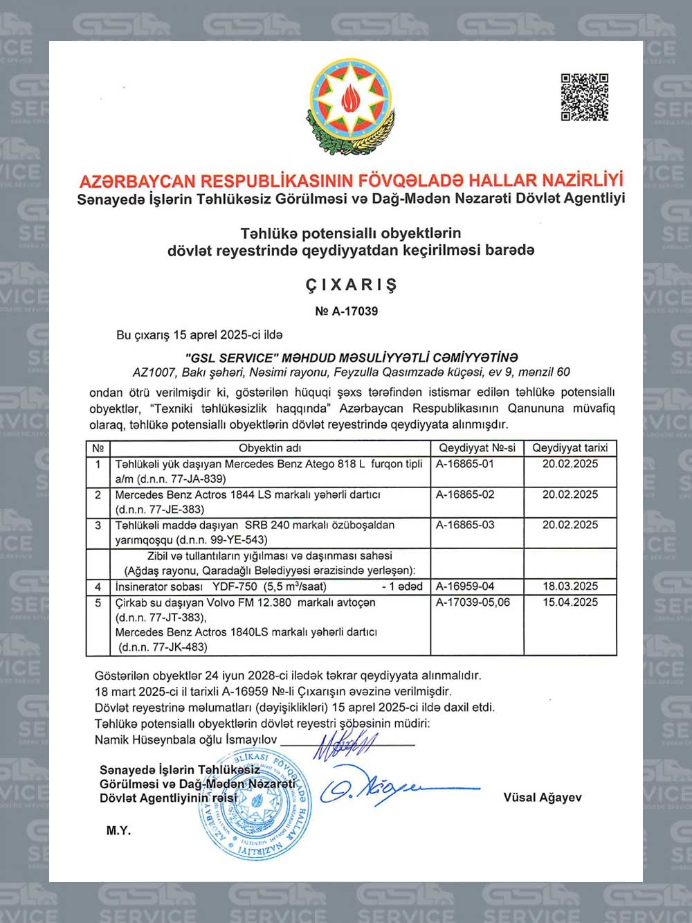 2021-ci ildə yaradılan GSL Service MMC fəaliyyət müddəti ərzində ölkənin ən nüfuzlu şirkətlərindən biri halına gəlmiş və tullantıların daşınması və çeşidlənməsi sahəsində öncül rolunu qorumağı bacarmışdır.